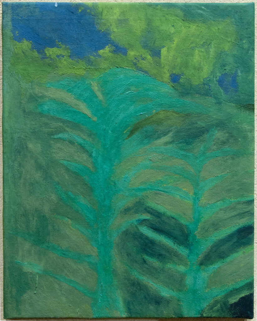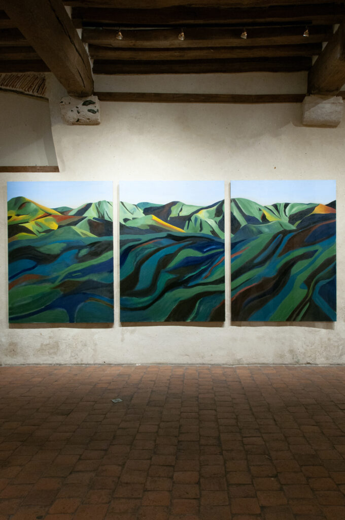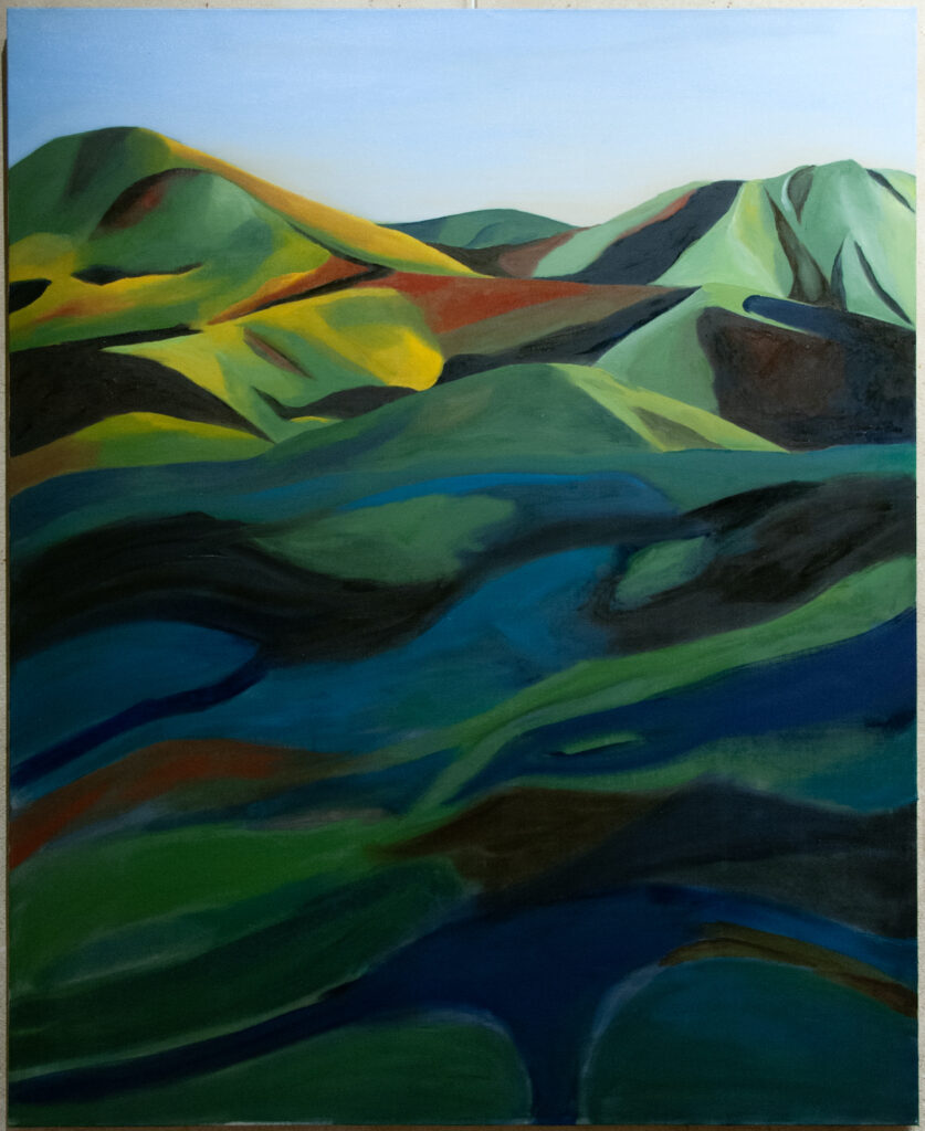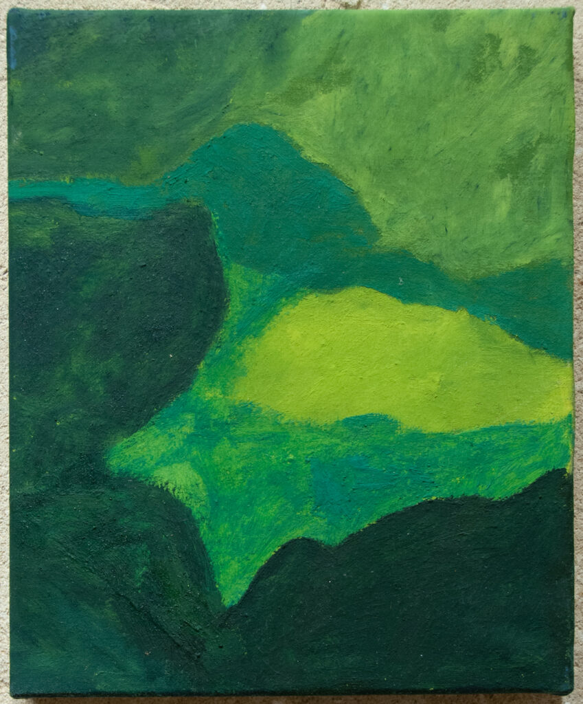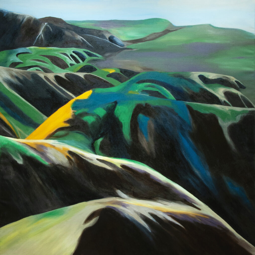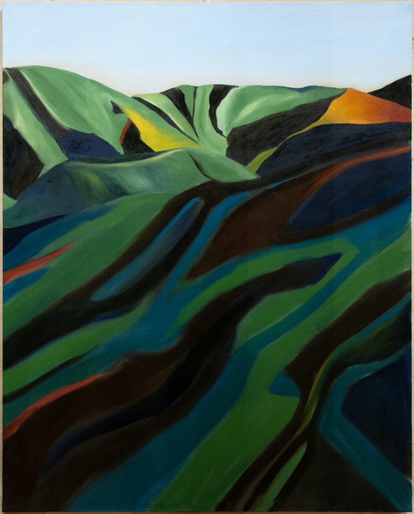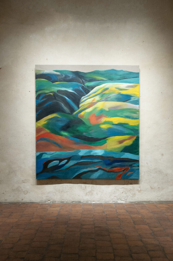 Her canvases reveal emotional resonances, pathways that lead to where the mysteries of color and light unfold. They create spaces that do not depict a specific landscape or figure, but evoke a sense of depth. Her recent work embraces an approach where painting does not aim to portray reality as a mere collection of facts, but rather as a reality shaped by the affects and vibrant emotions of a body. Her painted landscapes, more than faithful representations, are what Richard Mayhew would call mindscapes—inner landscapes where emotion takes the place of simple observation.