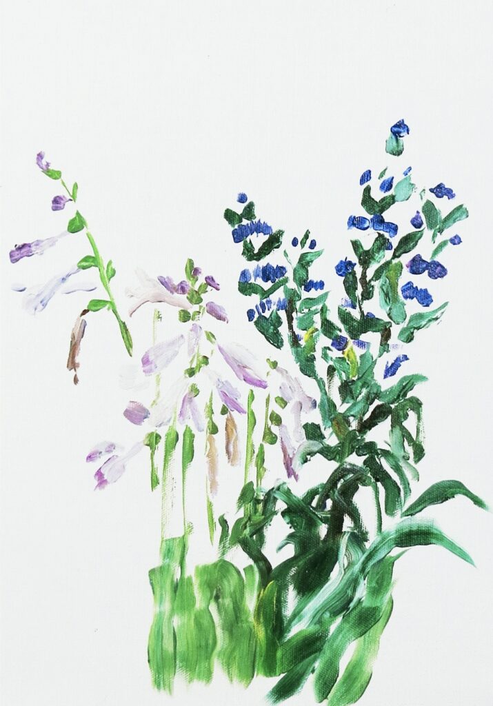 Caryopteris – Hosta, huile sur toile, 35 x 50 cm